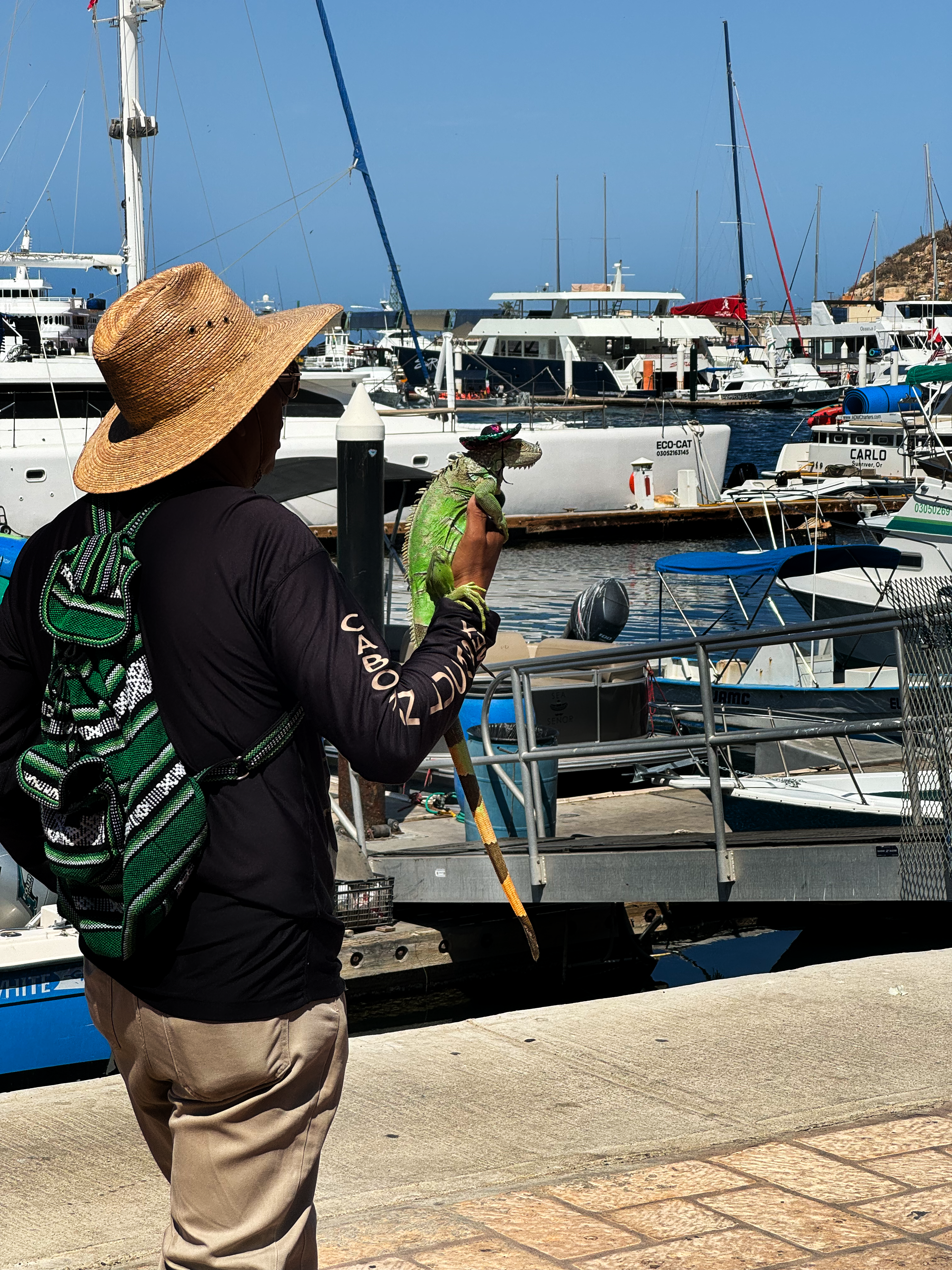 Day 4: Desert Hike; Tortilla, Tequila, and Traditional Medicine Cultural Tour; Camel Ride on the Beach (rescued from circuses around the Americas and International Humane Society supported); Downtown Cabo San Lucas and the Marina; Juana the Iguana on a walk with her human; Dolphin Swim (also supported by the International Humane Society)–Dolphins NOT pictured, as I couldn’t take my camera or phone in